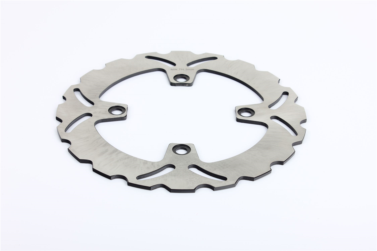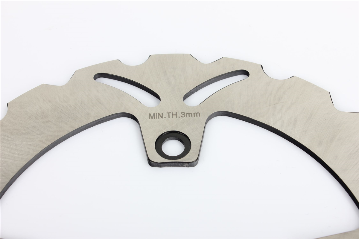 Materiał tarczy to stal nierdzewna 420 (2Cr13) o doskonałej odporności na korozję i zmienne temperatury jakim poddawane są tarcze hamulcowe. Wykonana przy użyciu technologii CNC. Tarcza posiada wyprofilowane wycięcia redukujące masę, ułatwiają także chłodzenie tarczy i oczyszczanie klocków hamulcowych. Tarcze posiadają certyfikat: ISO9001:2008.