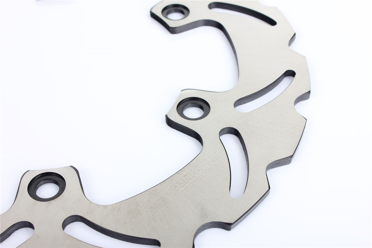 Materiał tarczy to stal nierdzewna 420 (2Cr13) o doskonałej odporności na korozję i zmienne temperatury jakim poddawane są tarcze hamulcowe. Wykonana przy użyciu technologii CNC. Tarcza posiada wyprofilowane wycięcia redukujące masę, ułatwiają także chłodzenie tarczy i oczyszczanie klocków hamulcowych. Tarcze posiadają certyfikat: ISO9001:2008.