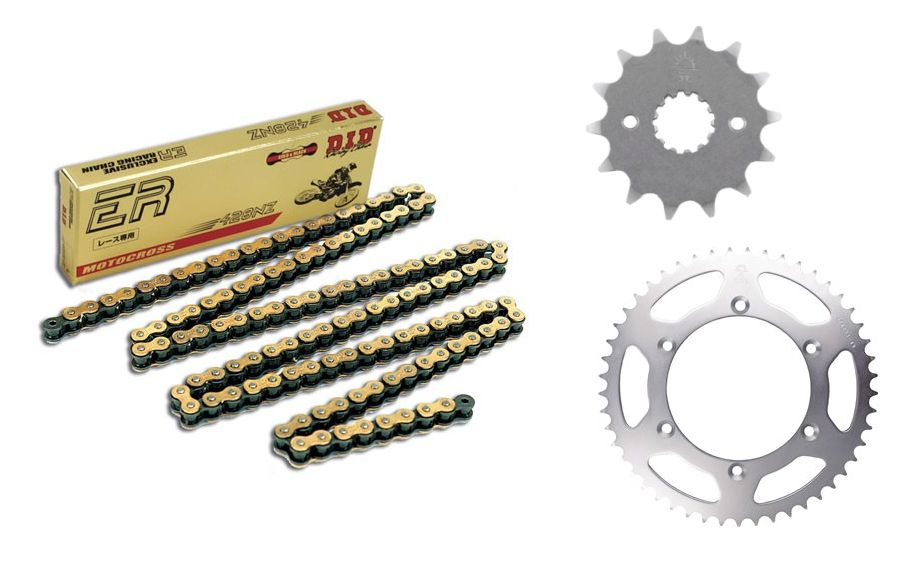 Poniższy napęd zawiera zębatki marki JT wytwarzane z japońskiej stali wysokowęglowej oraz produkowany w Japonii łańcuch marki D.I.D. Łańcuchy D.I.D to produkt najwyższej jakości. Producent – japońska firma „DAIDO KOGYO” działa na rynku już przeszło 70 lat specjalizując się w wytwarzaniu łańcuchów napędowych i rozrządu. Użytkownicy jednośladów na całym świecie, dawno przekonali się o ich niezaprzeczalnych walorach i stosują je z powodzeniem zarówno w najcięższych motocyklach drogowych, jak też w wyczynowych pojazdach sportowych, crossowych i ATV. Szeroka gama jest zróżnicowana pod względem wytrzymałości, zastosowania i ceny. Pozwala użytkownikowi dobrać produkt najbardziej odpowiadający jego wymaganiom.