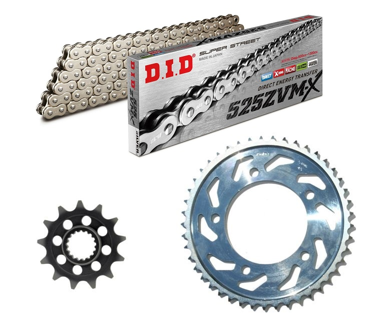 łańcuch: DID 525ZVM-X (X-ring hiper wzmocniony) 116 ogniw + zakuwka