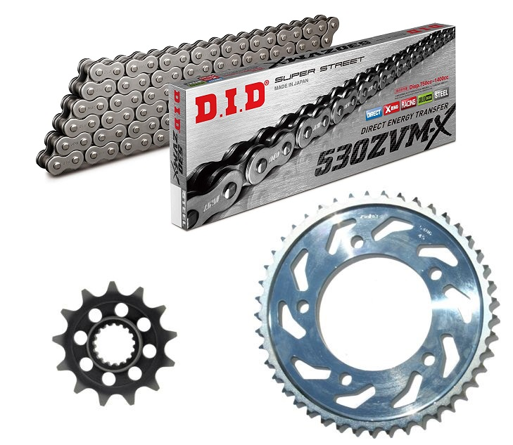 łańcuch: DID 530ZVM-X (X-ring hiper wzmocniony) 110 ogniw + zakuwka