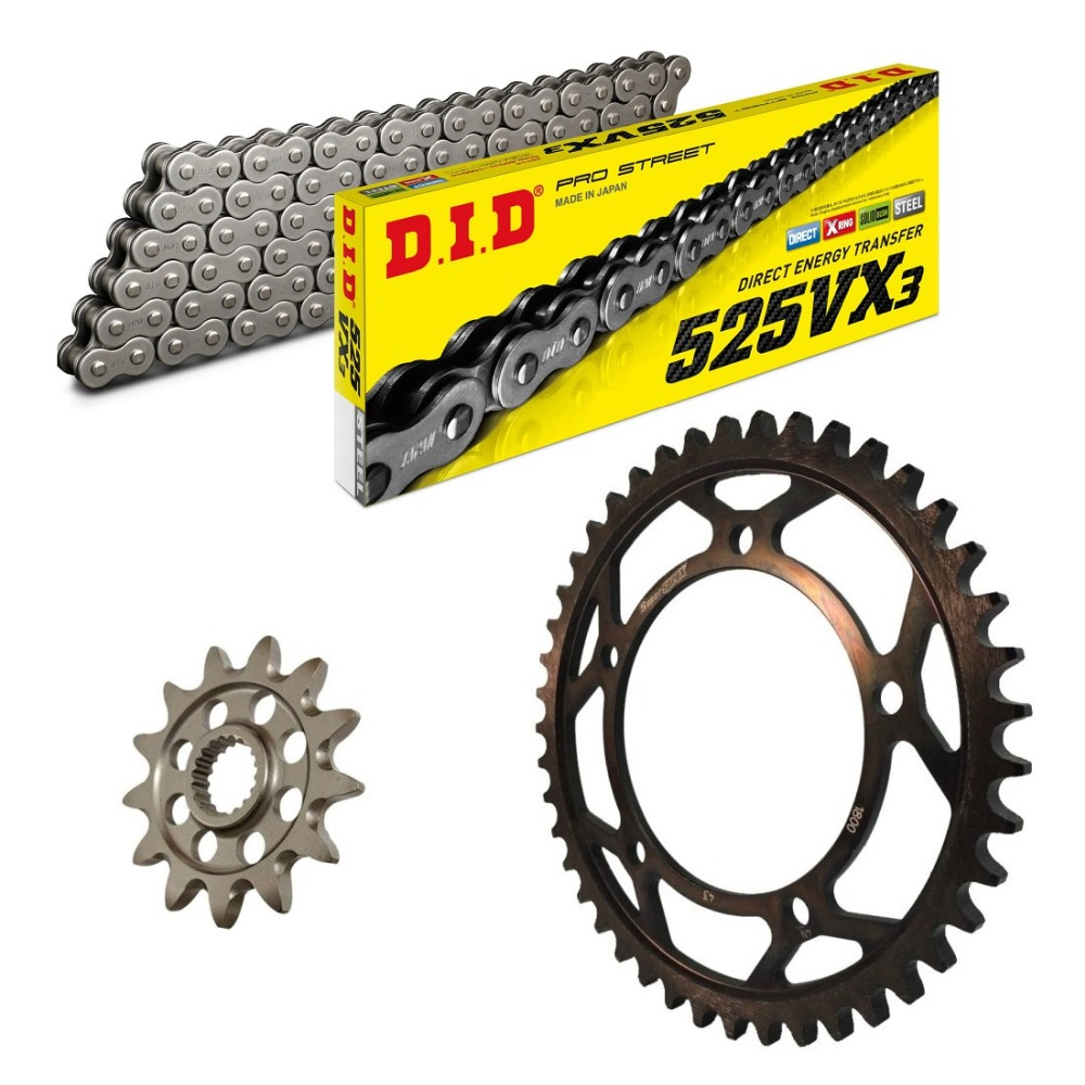 łańcuch: DID 525VX3 PROFESSIONAL (X-ring super wzmocniony) 118 ogniw + zakuwka