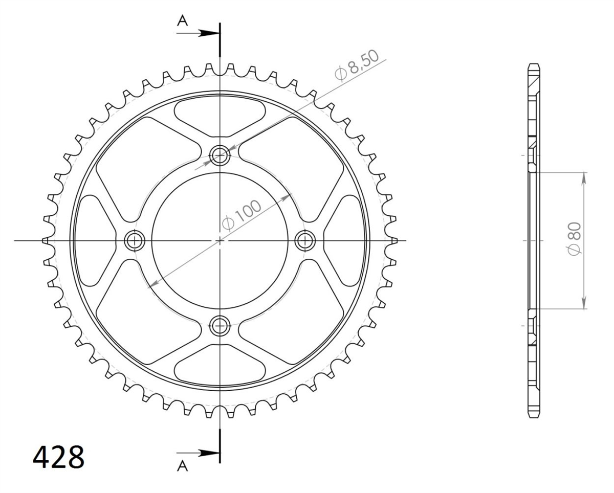Poniższy napęd zawiera tylną zębatkę Supersprox - RFE - wyścigową zębatkę stalową. Rozwijane na torze wyścigowym aby zapewnić wytrzymałość i wysokie osiągi. Zaprojektowane w systemie CAD i cięte CNC-laser aby zapewnić idealny montaż na kole. Wykonane ze stali SC-45 zgodnie z wysokimi normami Supersprox, pokryte unikalnym antykorozyjnym podwójnym ocynkiem (powłoka o nazwie 2XZINK) i wykończone na czarno. Wytrzymają 3 razy dłużej niż jakakolwiek aluminiowa zębatka. Jedne z najlżejszych zębatek stalowych na rynku. Dbałość o detale dotyczy także wyglądu.