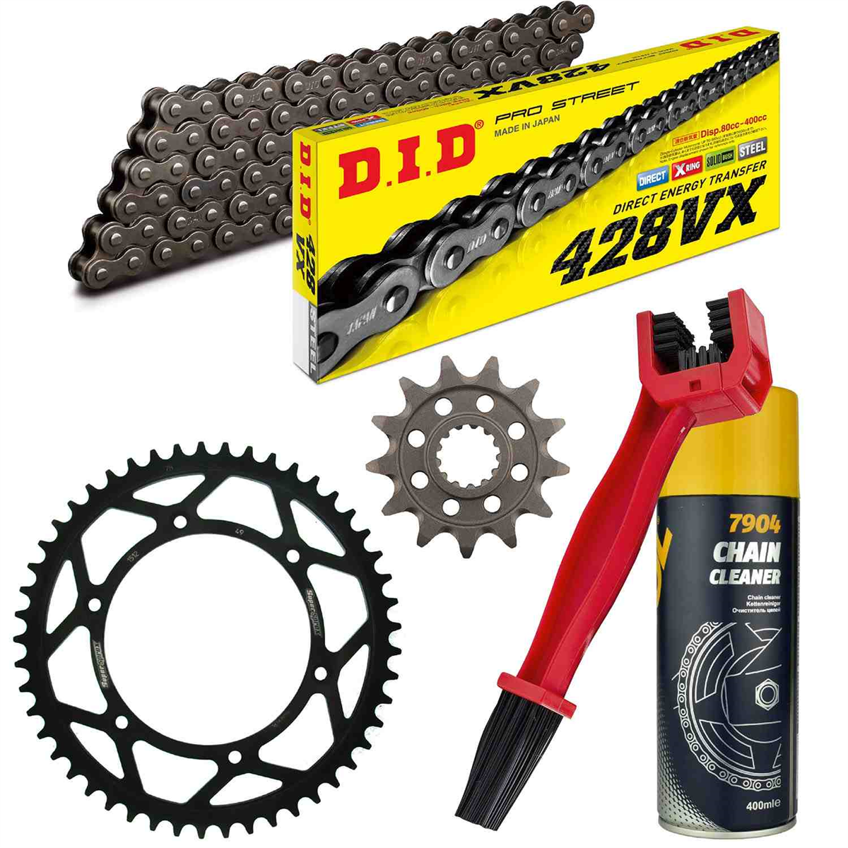 łańcuch: DID 428VX PROFESSIONAL (X-ring super wzmocniony) 128 ogniw + spinka
