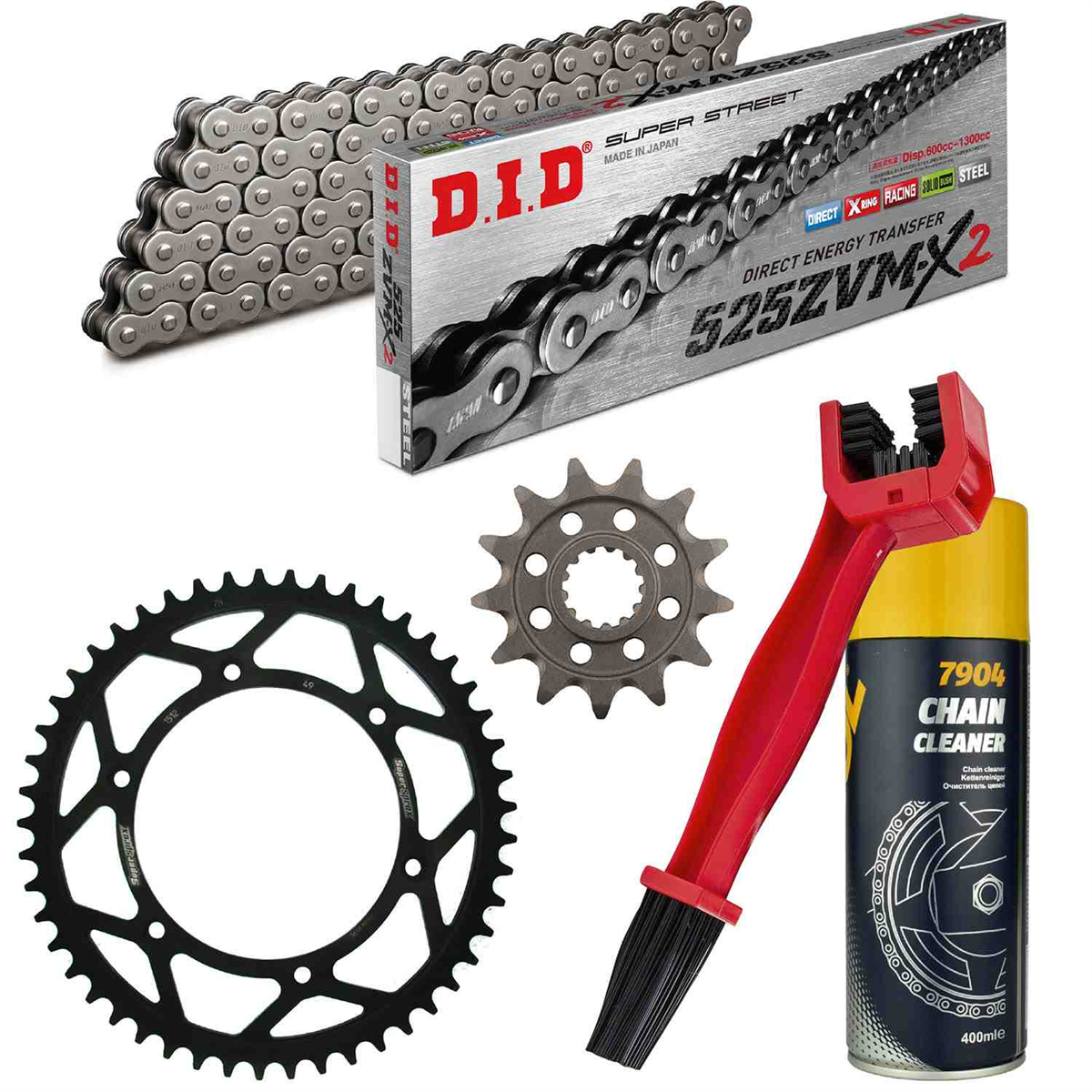 łańcuch: DID 525ZVM-X (X-ring hiper wzmocniony) 108 ogniw + zakuwka