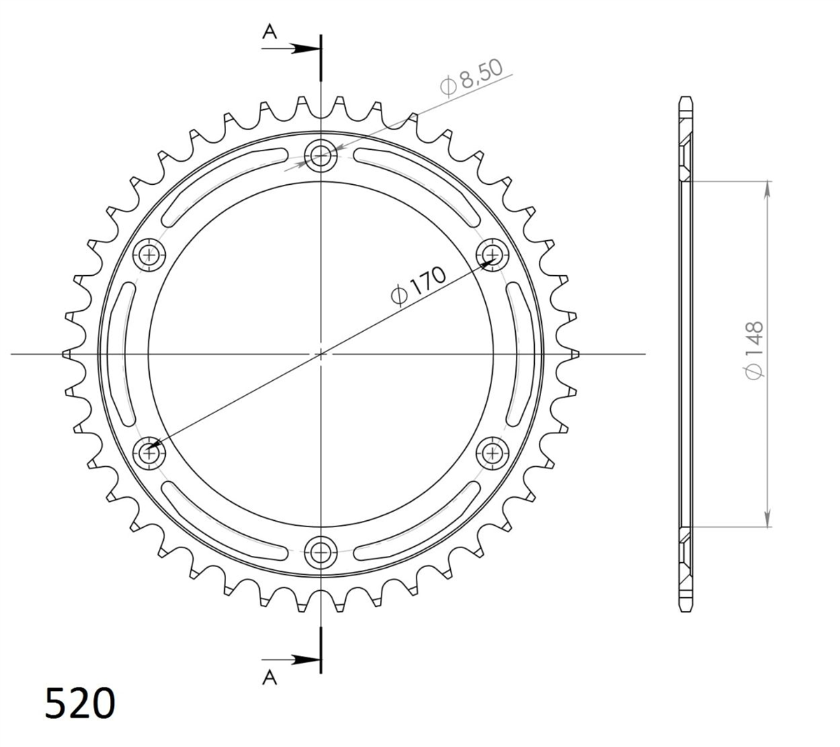 łańcuch: DID 520ZVM-X (X-ring hiper wzmocniony) 114 ogniw + zakuwka