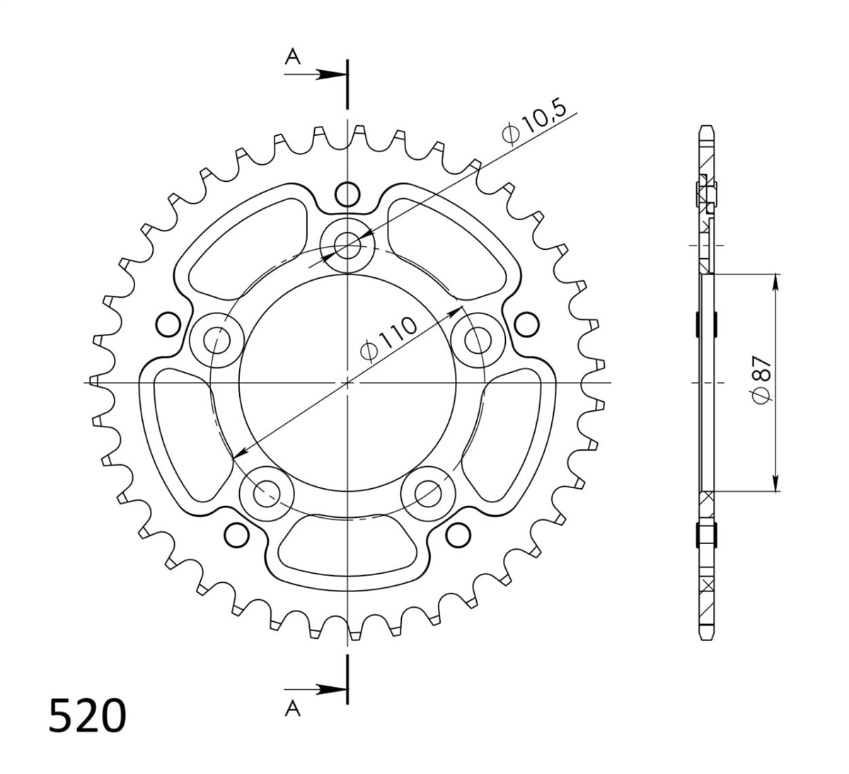Środek zębatki wykonany jest z lekkiego i wytrzymałego aluminum lotniczego, natomiast korona zębów wykonana jest z niklowanej stali węglowej.