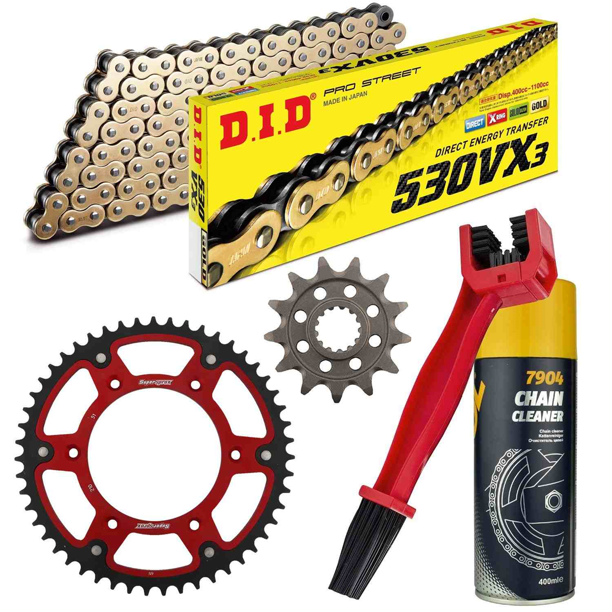 łańcuch: DID 530VX3 G&B PROFESSIONAL (X-ring wzmocniony, [złote ogniwa zewn.]) 108 ogniw + zakuwka