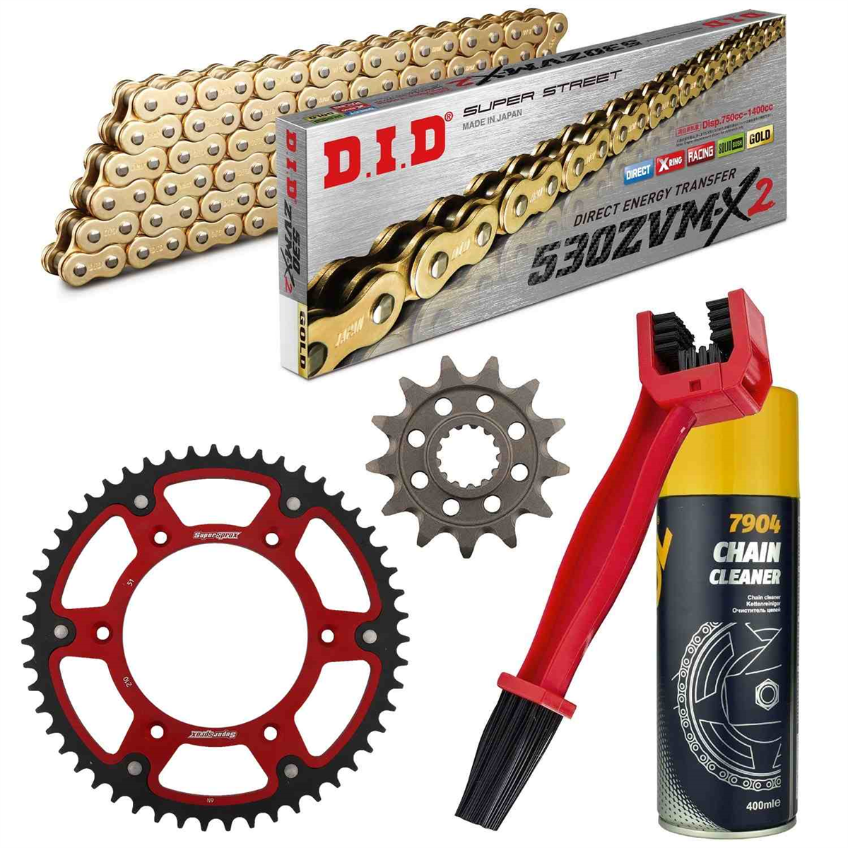 łańcuch: DID 530ZVM-X G&G (X-ring hiper wzmocniony, [złote ogniwa zewn. + wewn.]) 120 ogniw + zakuwka
