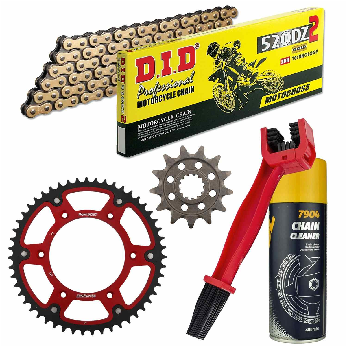 łańcuch: DID 520DZ2 G&B (bezoringowy wzmocniony, [złote ogniwa zewn.]) 114 ogniw + spinka
