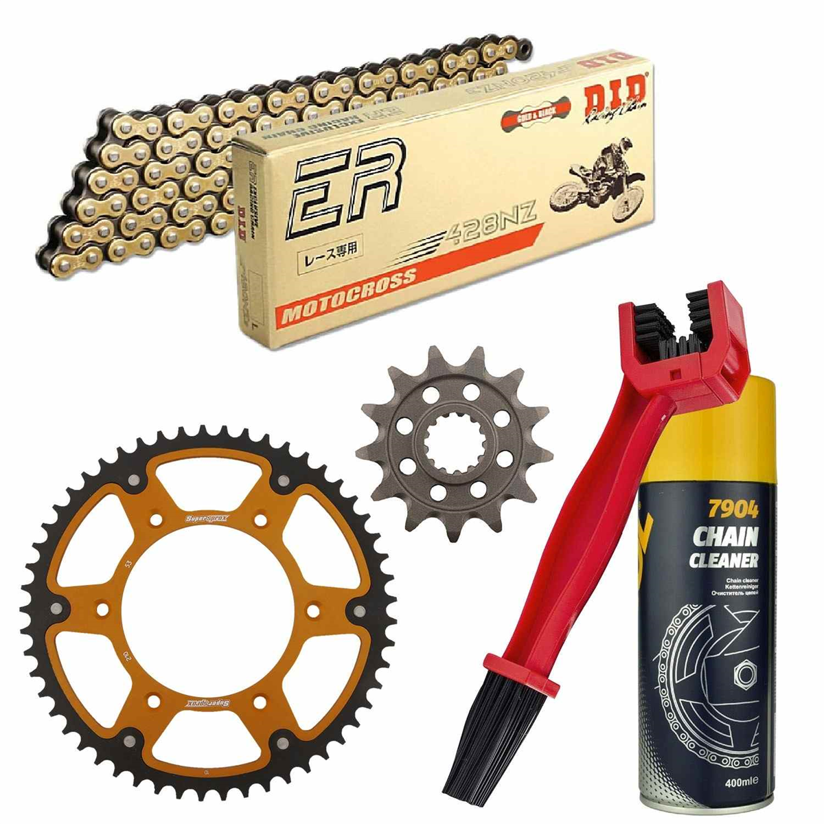 łańcuch: DID 428NZ G&B (bezoringowy cross super wzmocniony, [złote ogniwa zewn.]) 118 ogniw + spinka