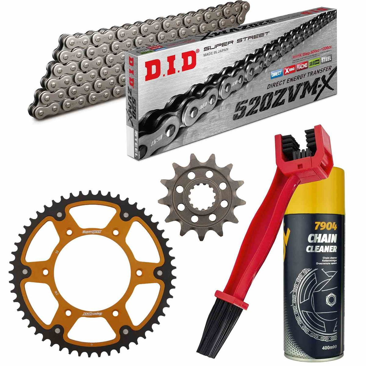 łańcuch: DID 520ZVM-X PROFESSIONAL (X-ring hiper wzmocniony) 114 ogniw + zakuwka