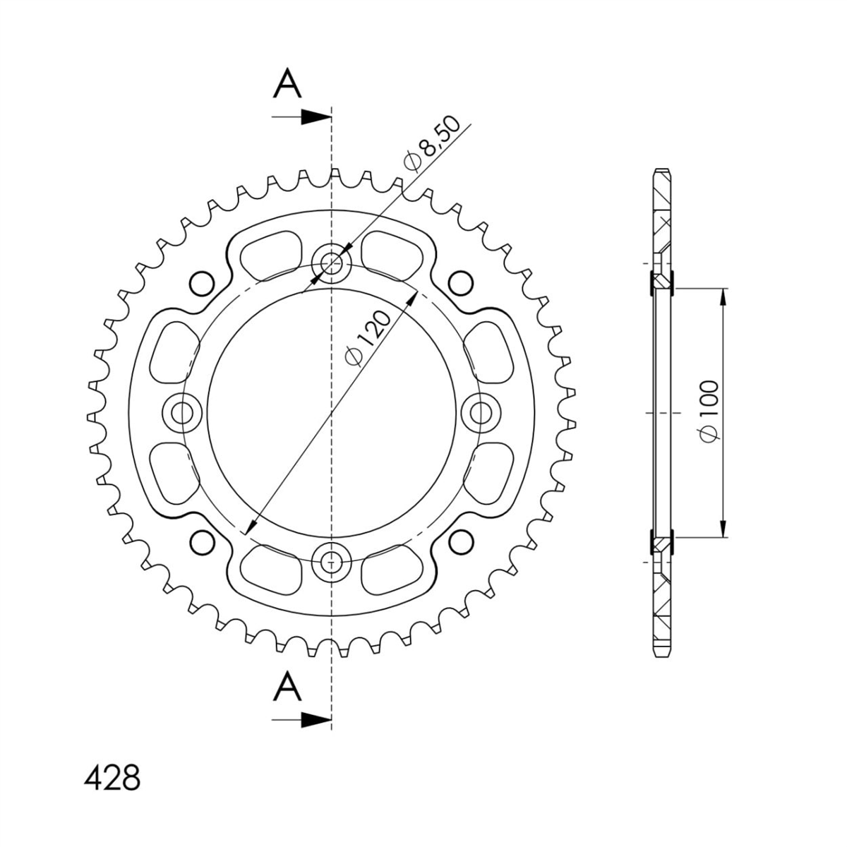 łańcuch: DID 428NZ (bezoringowy cross super wzmocniony) 118 ogniw + spinka