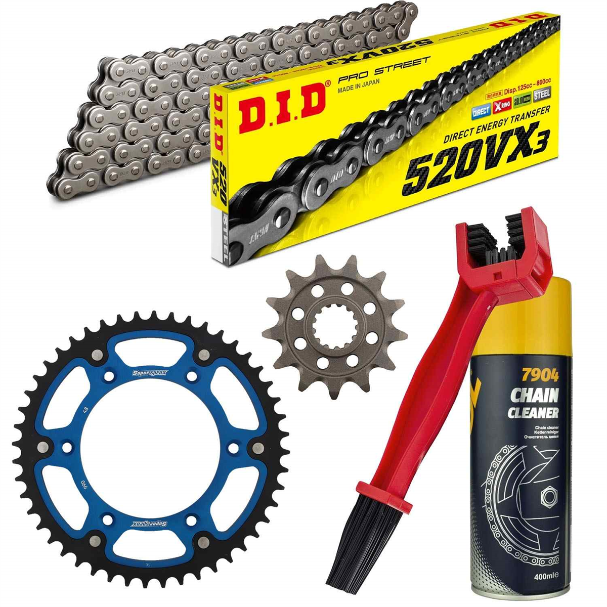 łańcuch: DID 520VX3 PROFESSIONAL (X-ring super wzmocniony) 114 ogniw + spinka