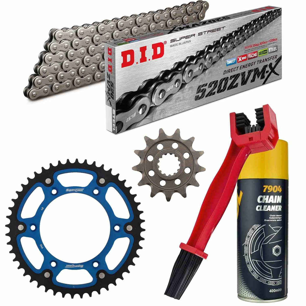 łańcuch: DID 520ZVM-X PROFESSIONAL (X-ring hiper wzmocniony) 114 ogniw + zakuwka