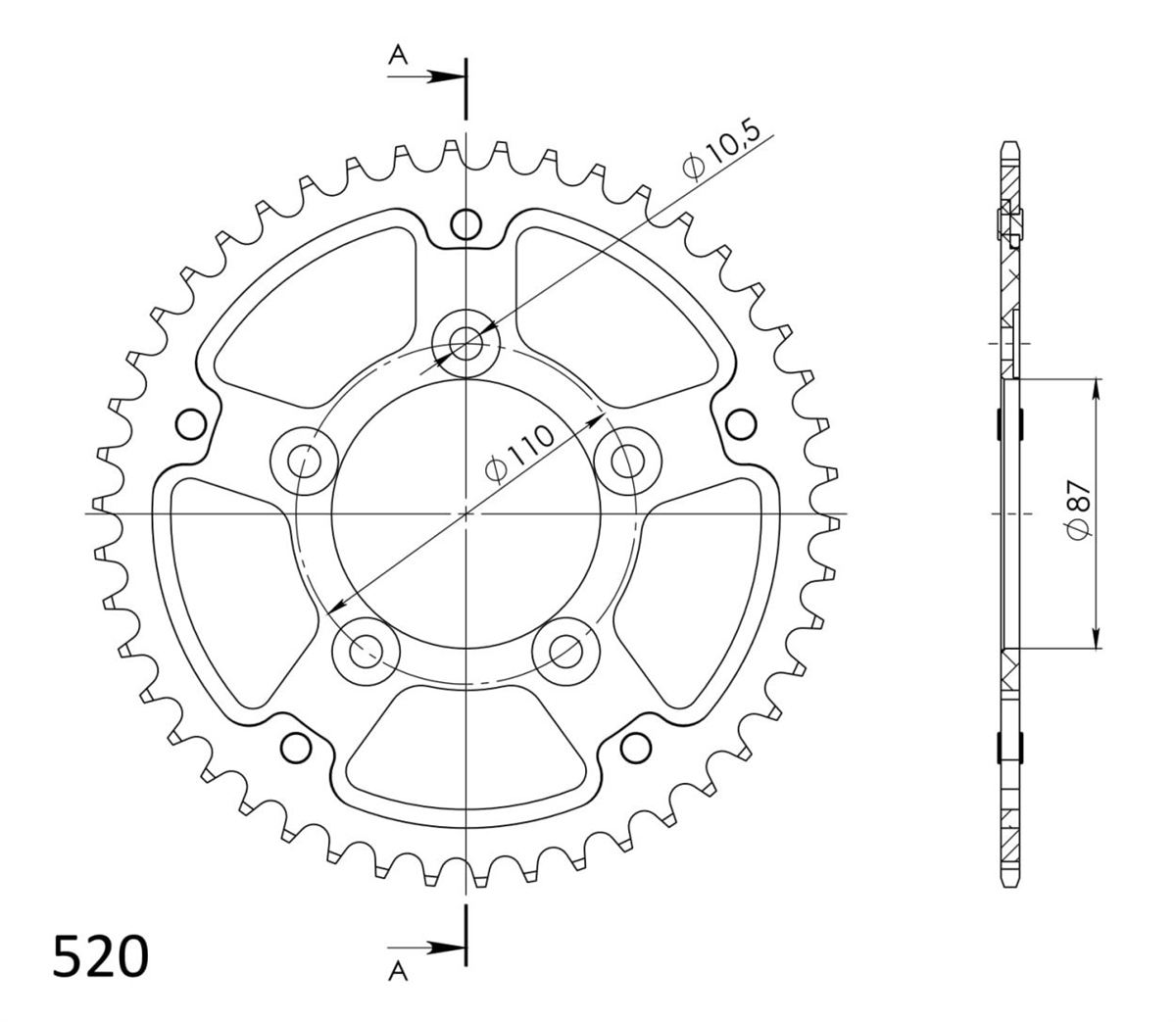 Środek zębatki wykonany jest z lekkiego i wytrzymałego aluminum lotniczego, natomiast korona zębów wykonana jest z niklowanej stali węglowej.