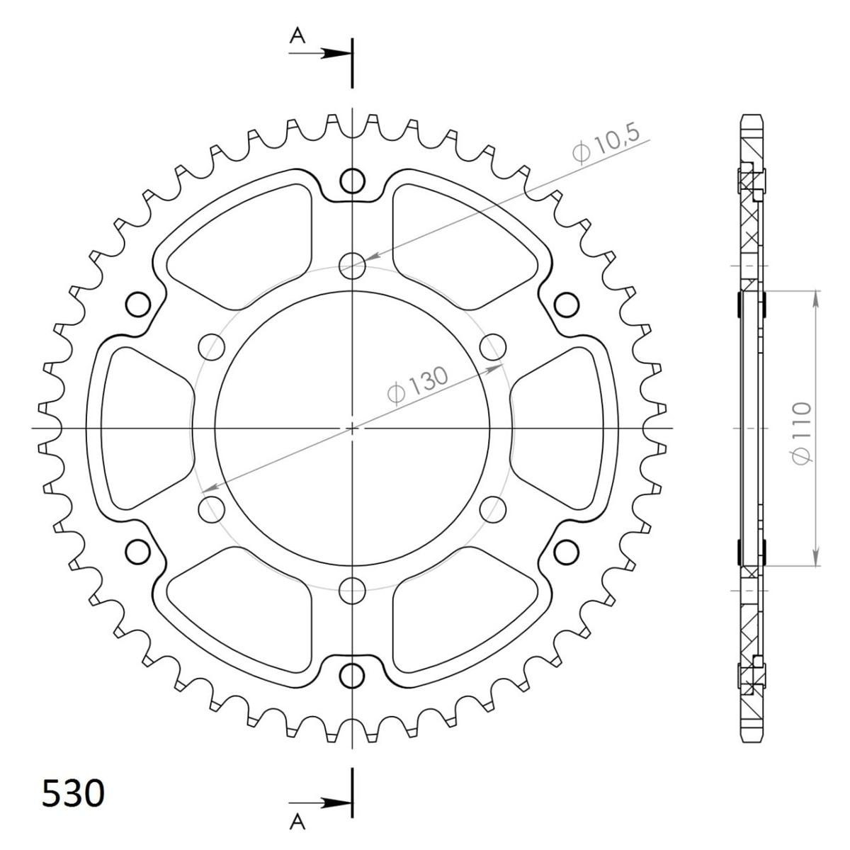 Środek zębatki wykonany jest z lekkiego i wytrzymałego aluminum lotniczego, natomiast korona zębów wykonana jest z niklowanej stali węglowej.