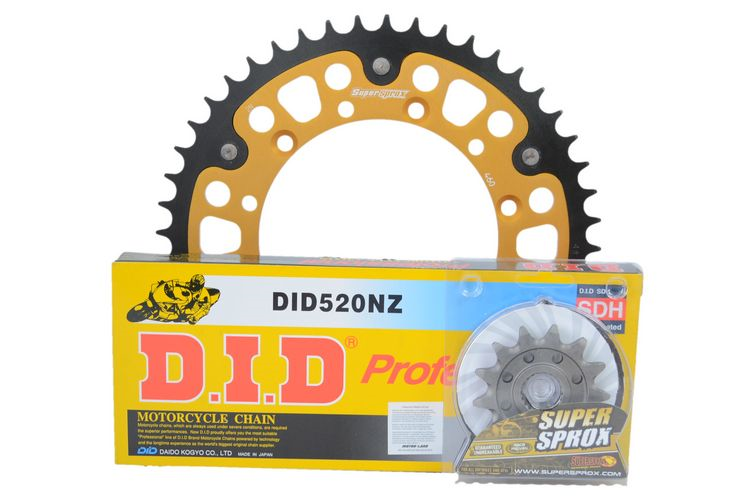 łańcuch: DID 520NZ (bezoringowy cross super wzmocniony) 112 ogniw + spinka