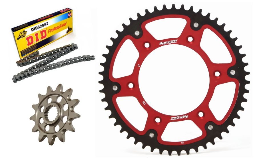 łańcuch: DID 520NZ (bezoringowy cross super wzmocniony) 114 ogniw + spinka