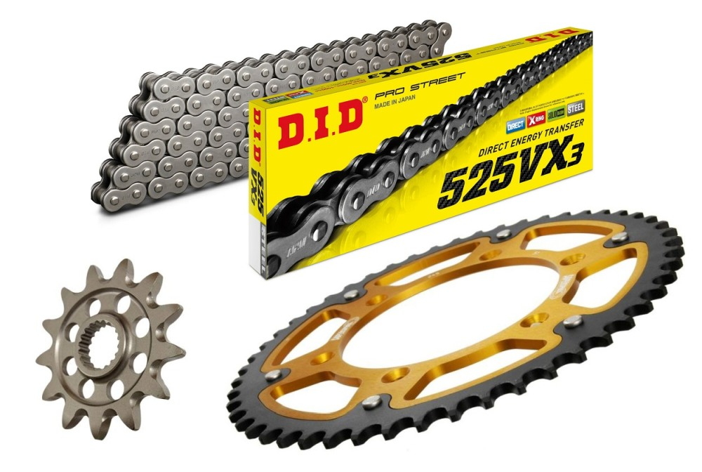 łańcuch: DID 525VX3 PROFESSIONAL (X-ring super wzmocniony) 118 ogniw + zakuwka