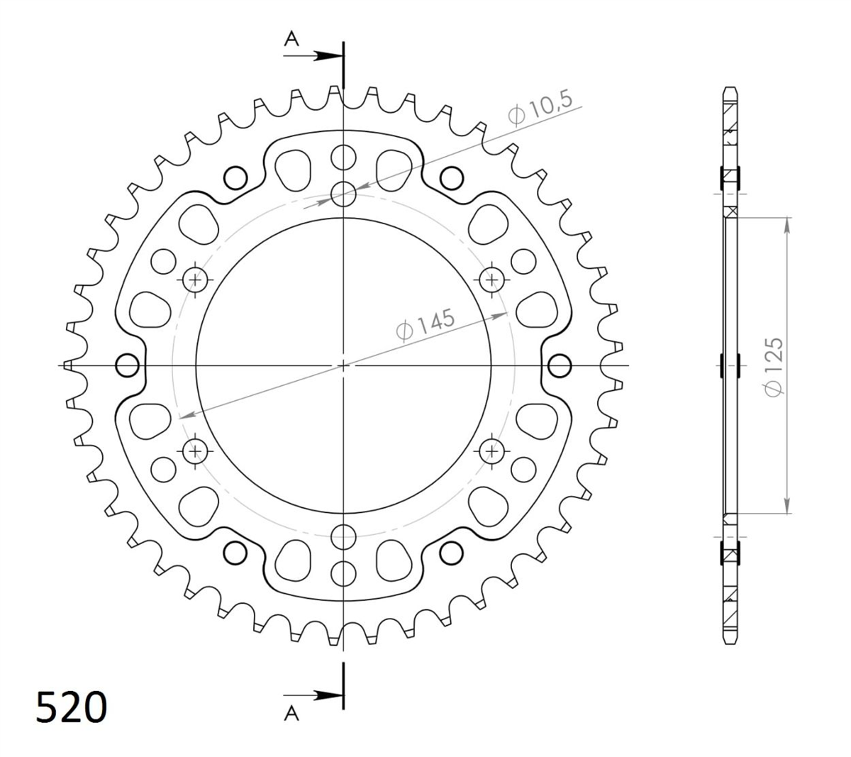 Środek zębatki wykonany jest z lekkiego i wytrzymałego aluminum lotniczego, natomiast korona zębów wykonana jest z niklowanej stali węglowej.