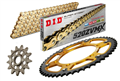 łańcuch: DID 520ZVM-X G&G (X-ring hiper wzmocniony, [złote ogniwa zewn. + wewn.]) 110 ogniw + zakuwka