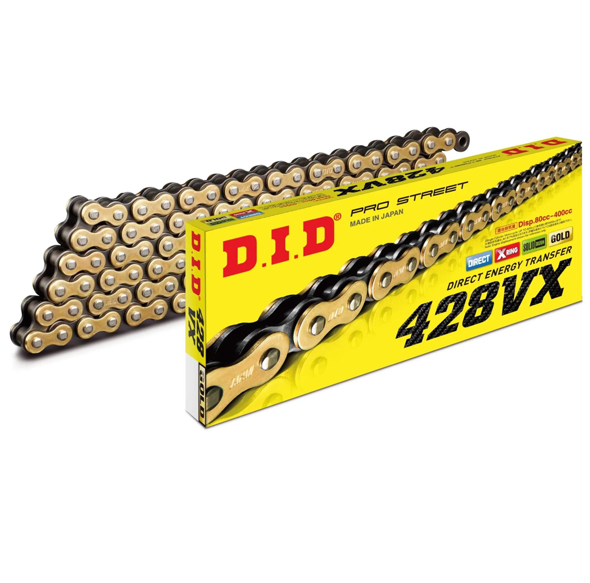 Łańcuch DID428VX G&B (x-ringowy super wzmocniony) jest dedykowany do motocykli szosowych, enduro, cross o maksymalnej pojemności do 350 ccm.