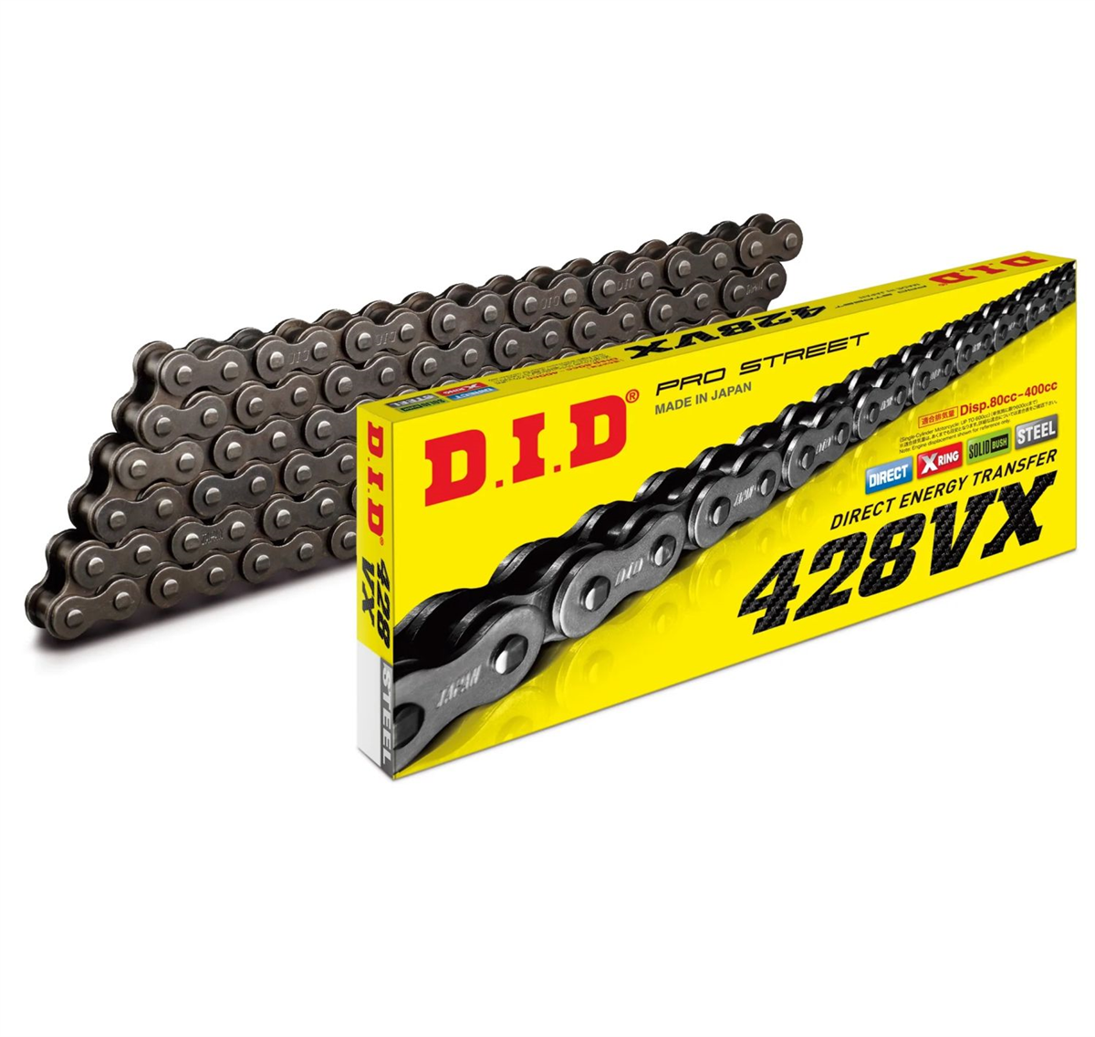 Łańcuch DID428VX (x-ring super wzmocniony) jest dedykowany do motocykli szosowych, enduro, cross o maksymalnej pojemności do 350 ccm.