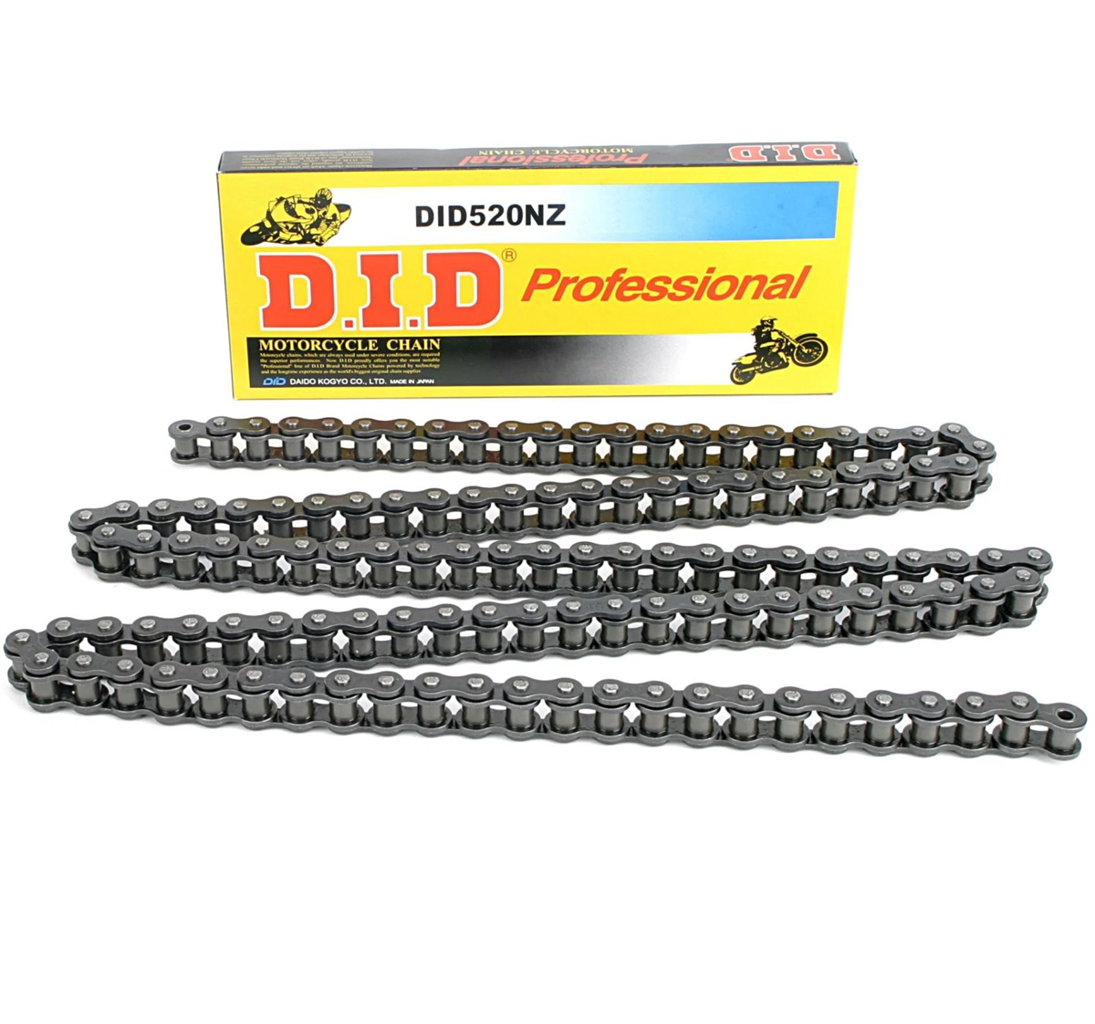Łańcuchy D.I.D to produkt najwyższej jakości. Producent - japońska firma "DAIDO KOGYO" działa na rynku już od 1933 roku. Specjalizuje się w wytwarzaniu łańcuchów napędowych i rozrządu. Użytkownicy jednośladów na całym świecie, dawno przekonali się o ich niezaprzeczalnych walorach i stosują je z powodzeniem zarówno w najcięższych motocyklach drogowych, jak też w wyczynowych pojazdach sportowych, crossowych, wyścigowych i ATV. Szeroka gama jest zróżnicowana pod względem wytrzymałości, zastosowania i ceny. Pozwala użytkownikowi dobrać produkt najbardziej odpowiadający jego wymaganiom.