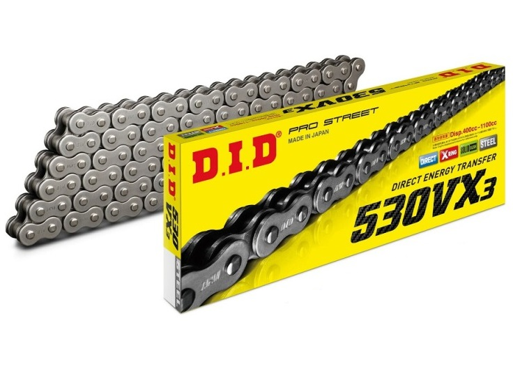 DID530VX3 to nowa generacja zastępująca łańcuch DID530VX2. Wzmocnione zostały wewnętrzne płytki co pozwoliło uzyskać o 8% większą odporność na rozciąganie względem poprzedników. Zastosowane zmiany w składzie materiałowym połączeń x-ring-owych pozwoliły poprawić ich właściwości uszczelniające, jak i odporność na zużycie o 5%.