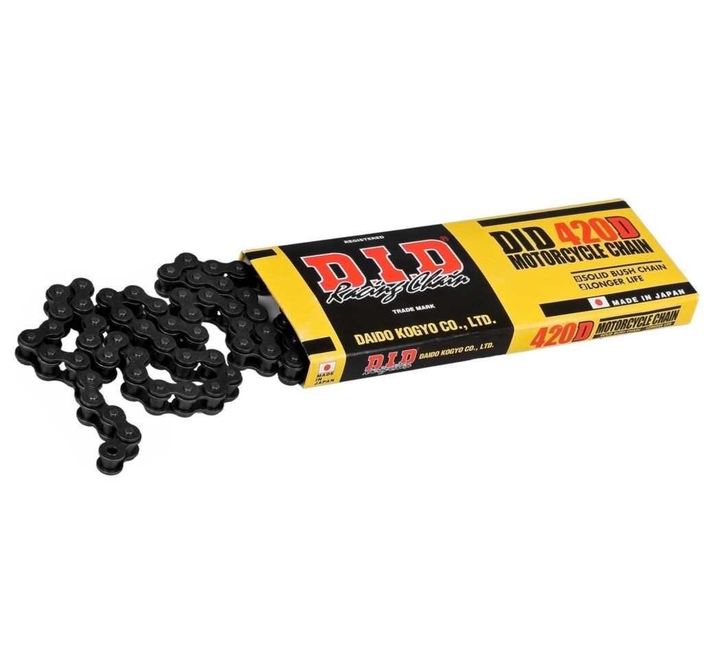 Łańcuch DID420D zastępuje DID420 STANDARD. W nowym łańcuchu zastosowano tulejki bez szwu, co sprawiło iż odporność na zużycie eksploatacyjne wzrosła z 20 na 50 %.