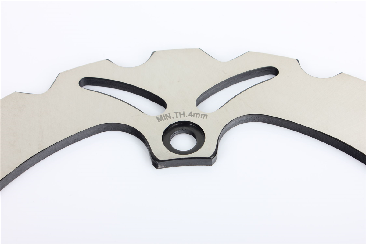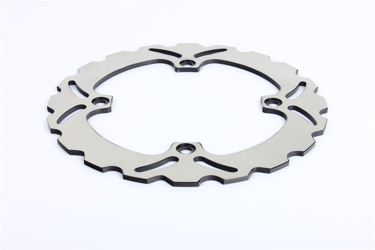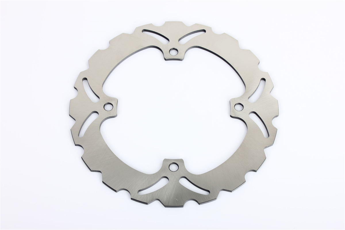 Materiał tarczy to stal nierdzewna 420 (2Cr13) o doskonałej odporności na korozję i zmienne temperatury jakim poddawane są tarcze hamulcowe. Wykonana przy użyciu technologii CNC. Tarcza posiada wyprofilowane wycięcia redukujące masę, ułatwiają także chłodzenie tarczy i oczyszczanie klocków hamulcowych. Tarcze posiadają certyfikat: ISO9001:2008.