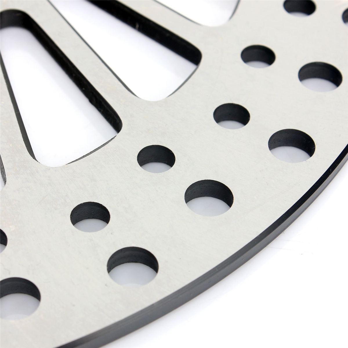 Materiał tarczy to stal nierdzewna 420 (2Cr13) o doskonałej odporności na korozję i zmienne temperatury jakim poddawane są tarcze hamulcowe. Wykonana przy użyciu technologii CNC. Tarcze posiadają certyfikat: ISO9001:2008.