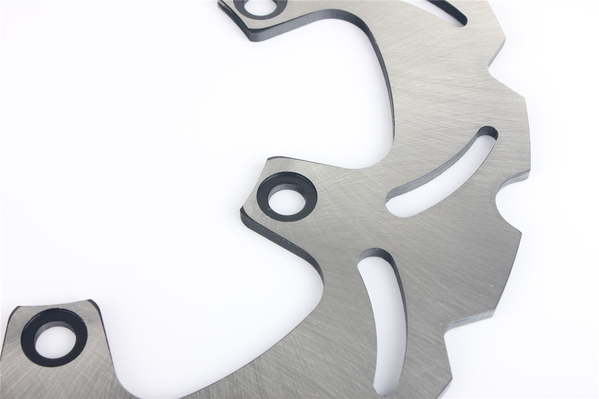Materiał tarczy to stal nierdzewna 420 (2Cr13) o doskonałej odporności na korozję i zmienne temperatury jakim poddawane są tarcze hamulcowe. Wykonana przy użyciu technologii CNC. Tarcza posiada wyprofilowane wycięcia redukujące masę, ułatwiają także chłodzenie tarczy i oczyszczanie klocków hamulcowych. Tarcze posiadają certyfikat: ISO9001:2008.