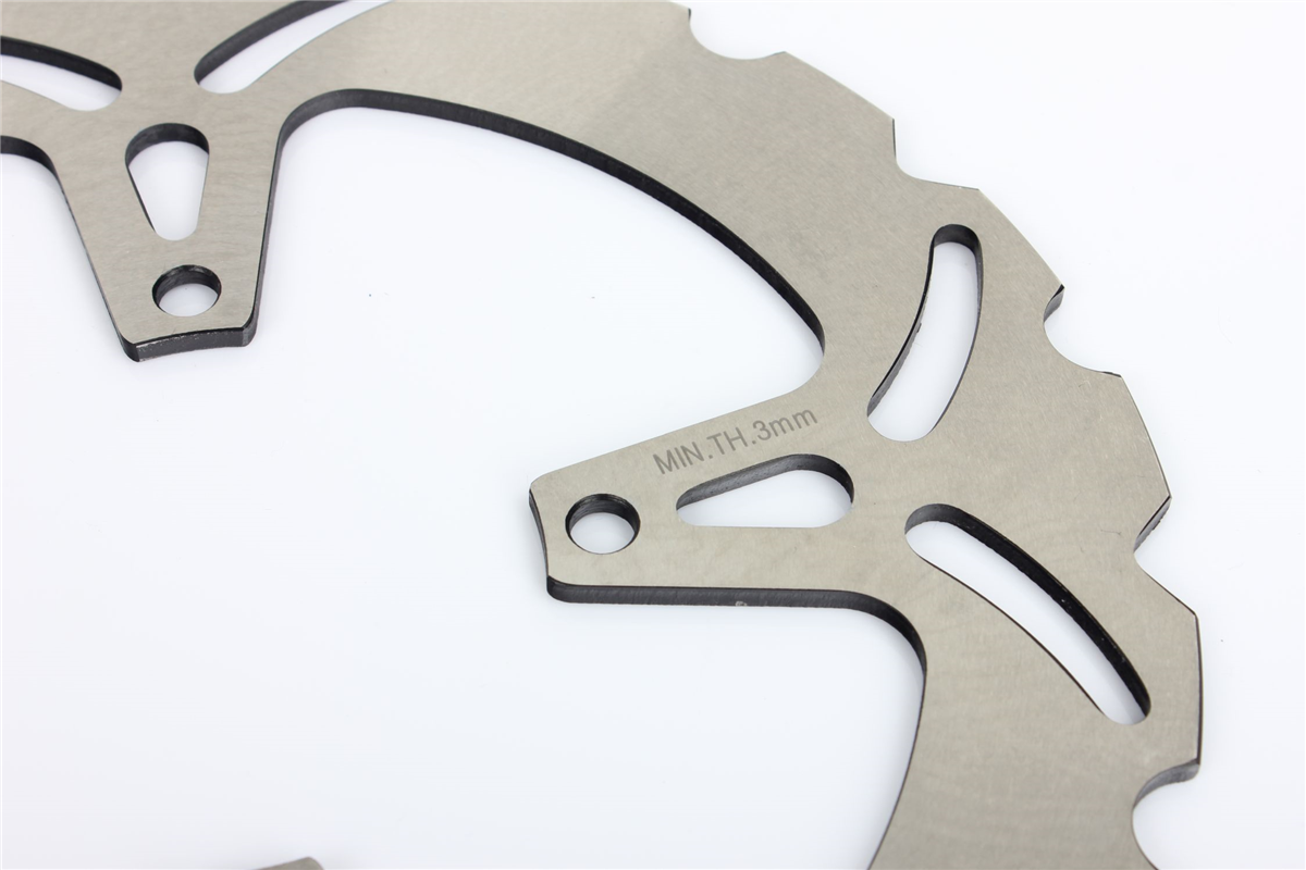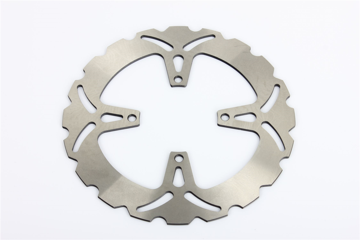 Materiał tarczy to stal nierdzewna 420 (2Cr13) o doskonałej odporności na korozję i zmienne temperatury jakim poddawane są tarcze hamulcowe. Wykonana przy użyciu technologii CNC. Tarcza posiada wyprofilowane wycięcia redukujące masę, ułatwiają także chłodzenie tarczy i oczyszczanie klocków hamulcowych. Tarcze posiadają certyfikat: ISO9001:2008.