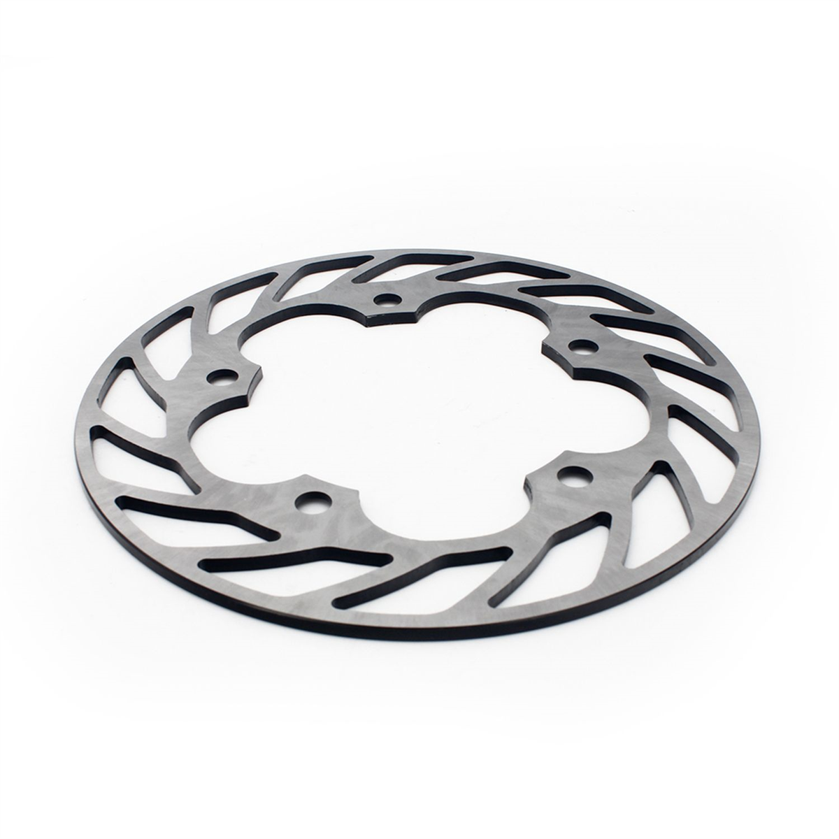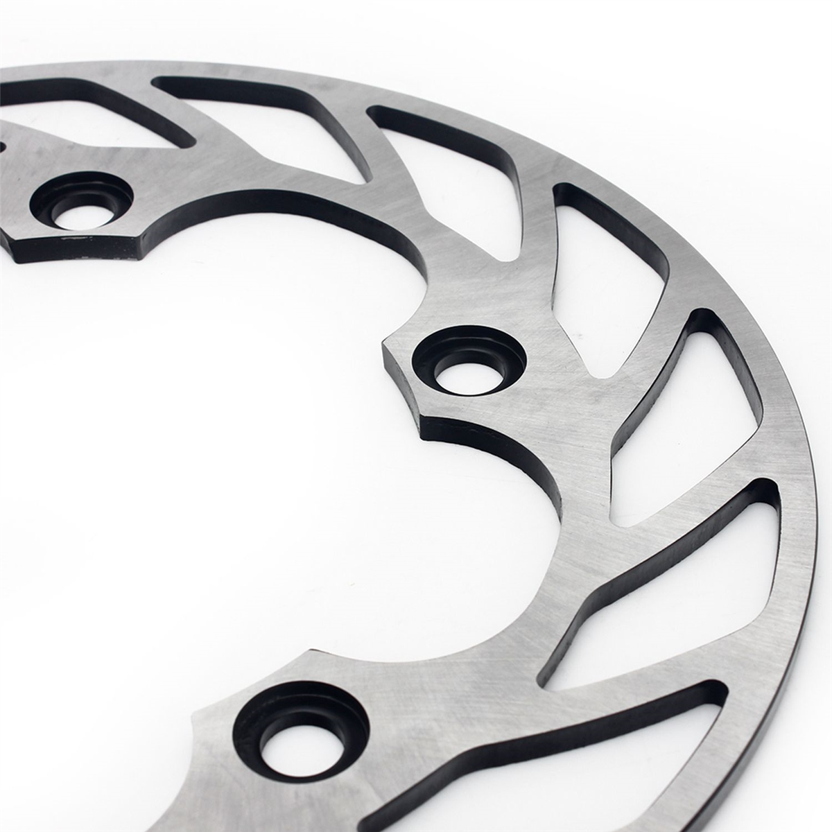Materiał tarczy to stal nierdzewna 420 (2Cr13) o doskonałej odporności na korozję i zmienne temperatury jakim poddawane są tarcze hamulcowe. Wykonana przy użyciu technologii CNC. Tarcza posiada wyprofilowane wycięcia redukujące masę, ułatwiają także chłodzenie tarczy i oczyszczanie klocków hamulcowych. Tarcze posiadają certyfikat: ISO9001:2008.