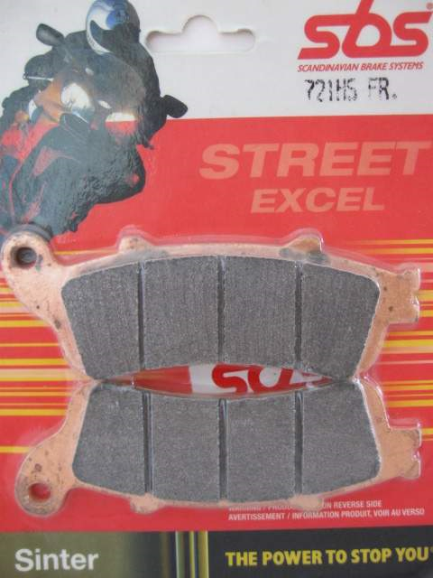 Klocki z serii STREET EXCEL. Zapewniają doskonałe dozowanie siły hamowania, nie ulegają efektowi fadingu, posiadają wysoką odporność termiczną nie tracąc swoich właściwości pod wpływem temperatury. Zaprojektowane z myślą o nowoczesnych mocnych motocyklach sportowych oraz ciężkich motocyklach, wymagających dużej siły spowalniającej. Klocki z tej serii to idealny kompromis pomiędzy maksymalnym współczynnikiem tarcia, a minimalnym zużyciem tarczy hamulcowej.