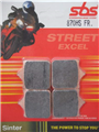 Klocki z serii STREET EXCEL. Zapewniają doskonałe dozowanie siły hamowania, nie ulegają efektowi fadingu, posiadają wysoką odporność termiczną nie tracąc swoich właściwości pod wpływem temperatury. Zaprojektowane z myślą o nowoczesnych mocnych motocyklach sportowych oraz ciężkich motocyklach, wymagających dużej siły spowalniającej. Klocki z tej serii to idealny kompromis pomiędzy maksymalnym współczynnikiem tarcia, a minimalnym zużyciem tarczy hamulcowej.