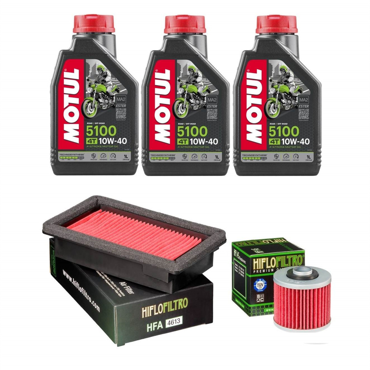 olej: MOTUL 5100 4T 10W40 3 x 1 litr