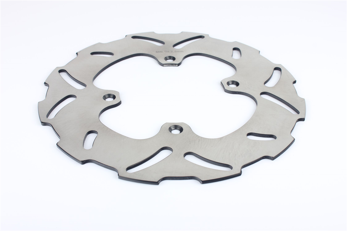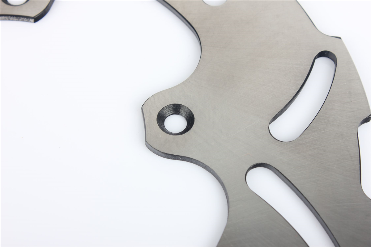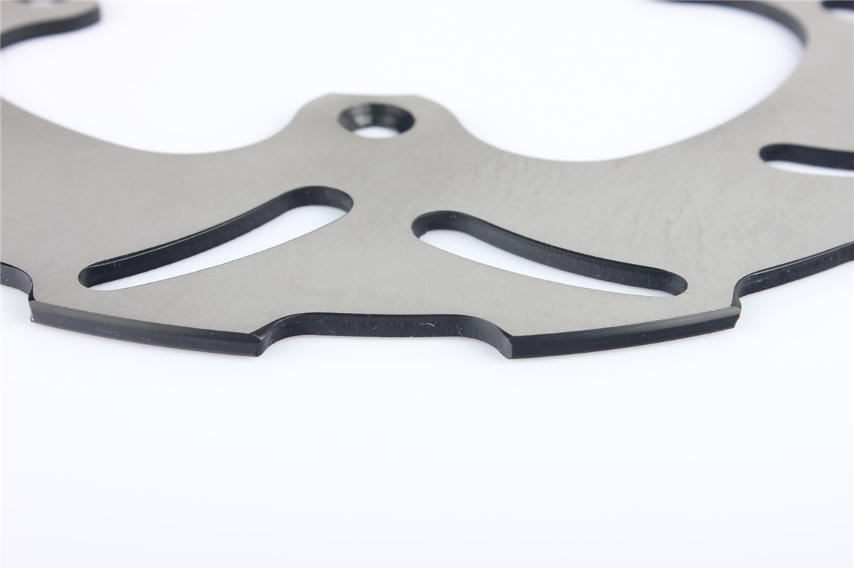 Materiał tarczy to stal nierdzewna 420 (2Cr13) o doskonałej odporności na korozję i zmienne temperatury jakim poddawane są tarcze hamulcowe. Wykonana przy użyciu technologii CNC. Tarcza posiada wyprofilowane wycięcia redukujące masę, ułatwiają także chłodzenie tarczy i oczyszczanie klocków hamulcowych. Tarcze posiadają certyfikat: ISO9001:2008.