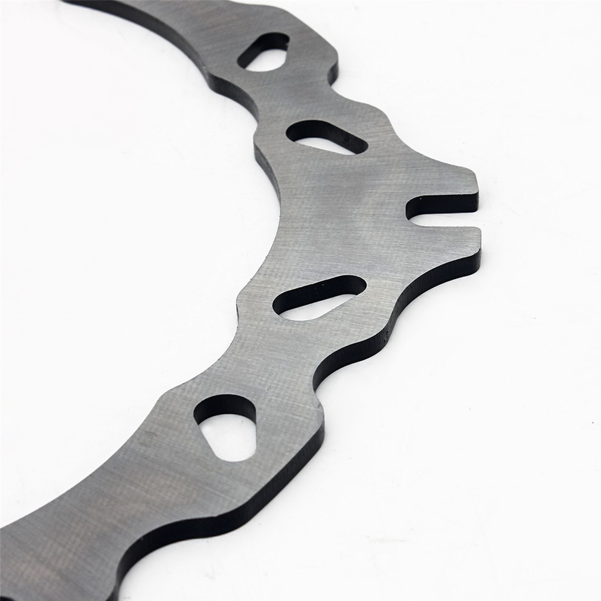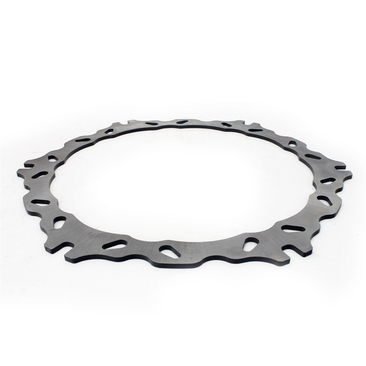 Materiał tarczy to stal nierdzewna 420 (2Cr13) o doskonałej odporności na korozję i zmienne temperatury jakim poddawane są tarcze hamulcowe. Wykonana przy użyciu technologii CNC. Tarcza posiada wyprofilowane wycięcia redukujące masę, ułatwiają także chłodzenie tarczy i oczyszczanie klocków hamulcowych. Tarcze posiadają certyfikat: ISO9001:2008.
