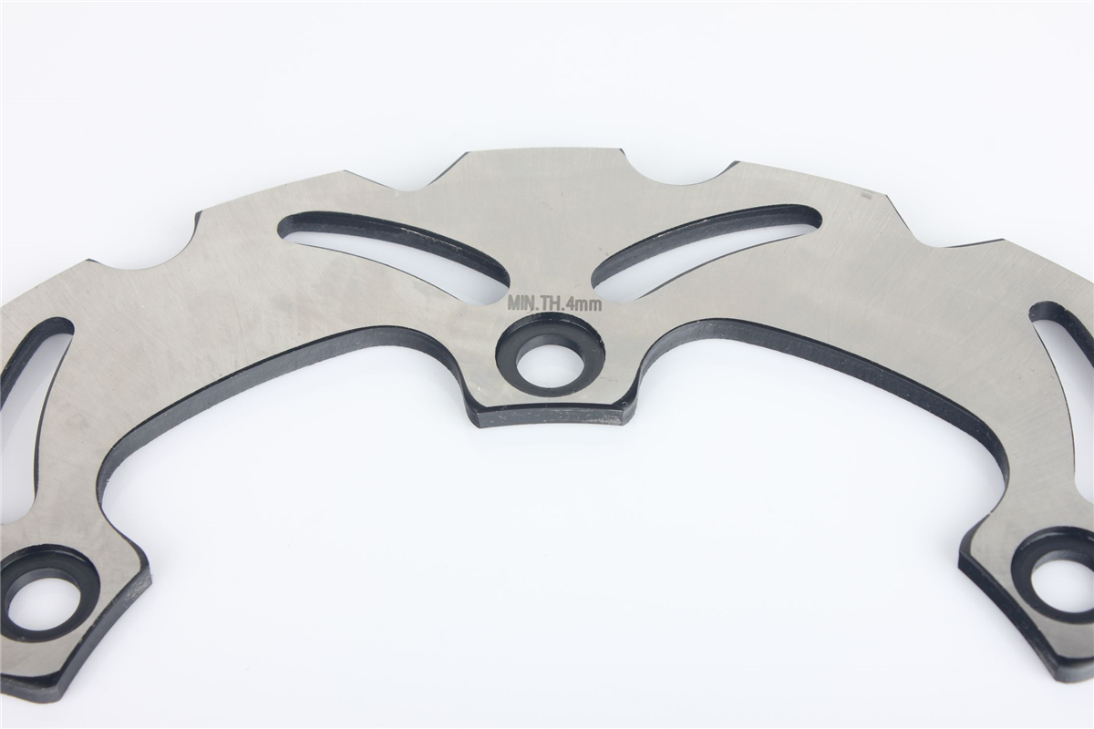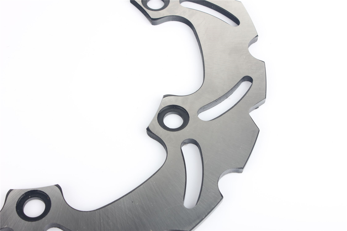 Materiał tarczy to stal nierdzewna 420 (2Cr13) o doskonałej odporności na korozję i zmienne temperatury jakim poddawane są tarcze hamulcowe. Wykonana przy użyciu technologii CNC. Tarcza posiada wyprofilowane wycięcia redukujące masę, ułatwiają także chłodzenie tarczy i oczyszczanie klocków hamulcowych. Tarcze posiadają certyfikat: ISO9001:2008.