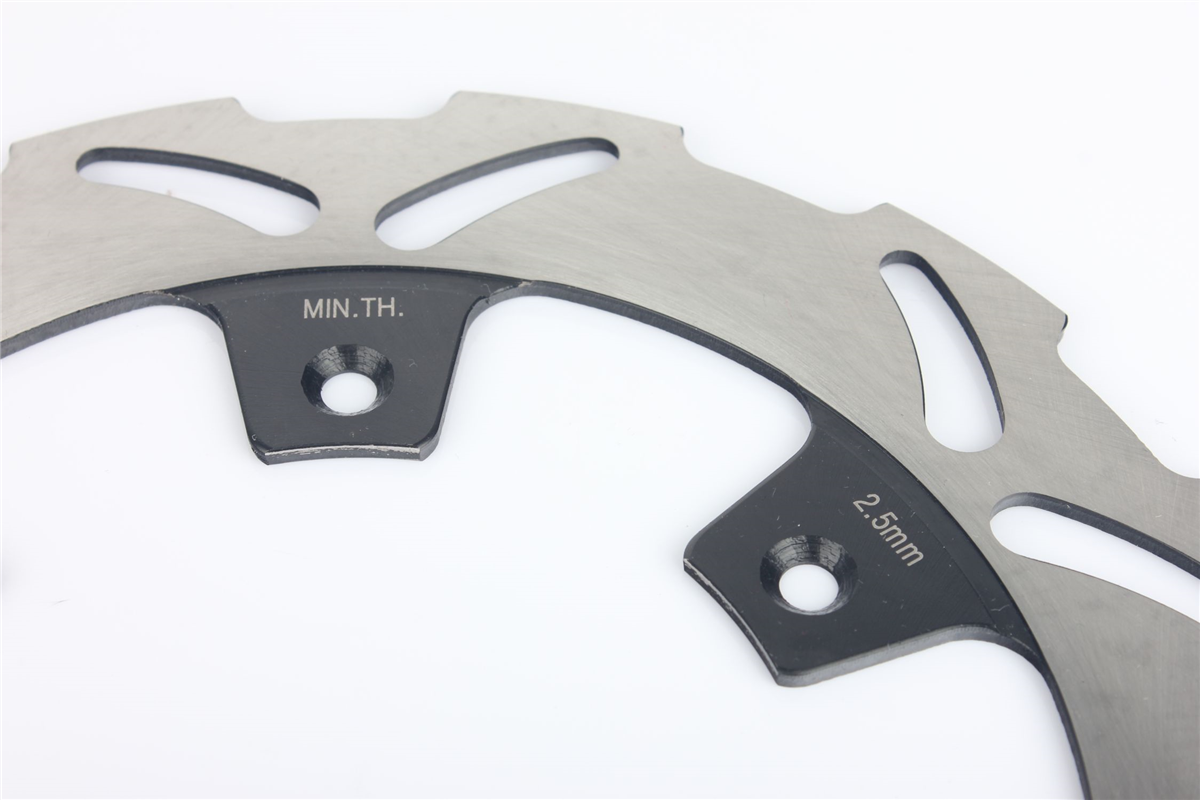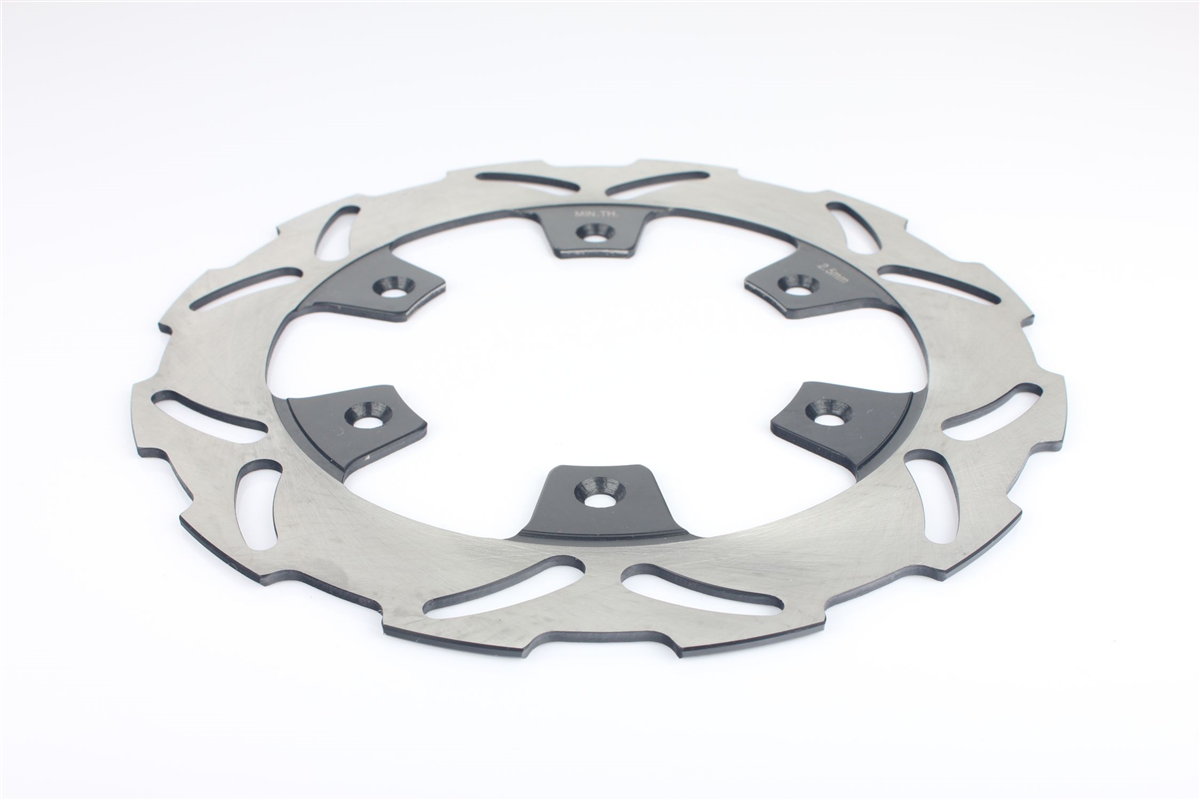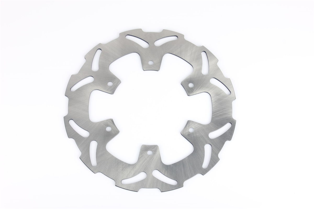 Materiał tarczy to stal nierdzewna 420 (2Cr13) o doskonałej odporności na korozję i zmienne temperatury jakim poddawane są tarcze hamulcowe. Wykonana przy użyciu technologii CNC. Tarcza posiada wyprofilowane wycięcia redukujące masę, ułatwiają także chłodzenie tarczy i oczyszczanie klocków hamulcowych. Tarcze posiadają certyfikat: ISO9001:2008.