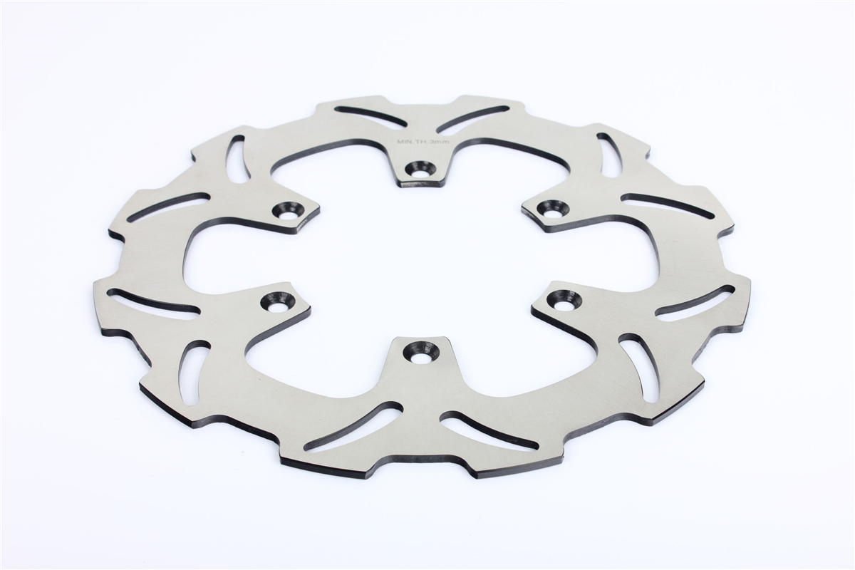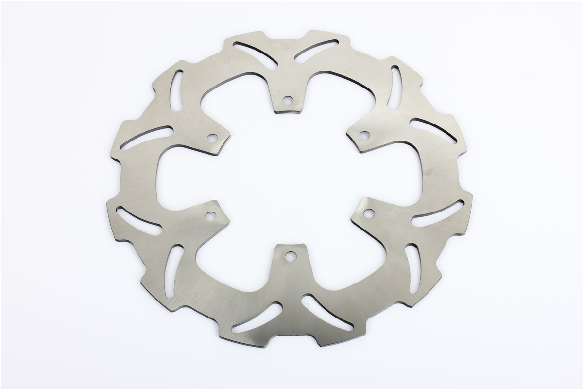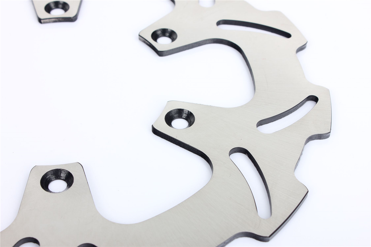 Materiał tarczy to stal nierdzewna 420 (2Cr13) o doskonałej odporności na korozję i zmienne temperatury jakim poddawane są tarcze hamulcowe. Wykonana przy użyciu technologii CNC. Tarcza posiada wyprofilowane wycięcia redukujące masę, ułatwiają także chłodzenie tarczy i oczyszczanie klocków hamulcowych. Tarcze posiadają certyfikat: ISO9001:2008.