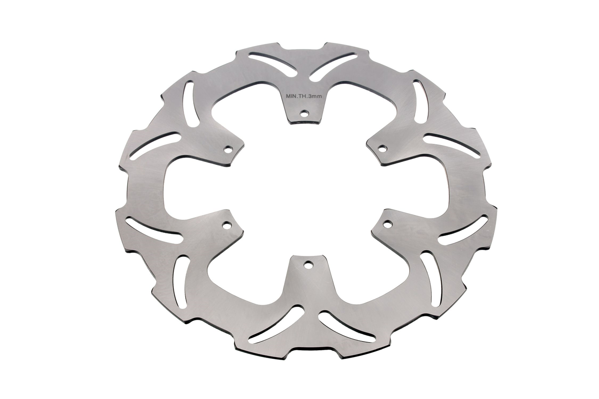 Materiał tarczy to stal nierdzewna 420 (2Cr13) o doskonałej odporności na korozję i zmienne temperatury jakim poddawane są tarcze hamulcowe. Wykonana przy użyciu technologii CNC. Tarcza posiada wyprofilowane wycięcia redukujące masę, ułatwiają także chłodzenie tarczy i oczyszczanie klocków hamulcowych. Tarcze posiadają certyfikat: ISO9001:2008.