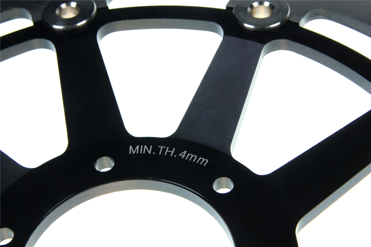Materiał tarczy to stal nierdzewna 420 (2Cr13) o doskonałej odporności na korozję i zmienne temperatury jakim poddawane są tarcze hamulcowe. Wykonana przy użyciu technologii CNC. Tarcza posiada wyprofilowane wycięcia redukujące masę, ułatwiają także chłodzenie tarczy i oczyszczanie klocków hamulcowych. Środek tarczy wykonany jest anodowanego aluminium 6061-T6. Tarcze posiadają certyfikat: ISO9001:2008.