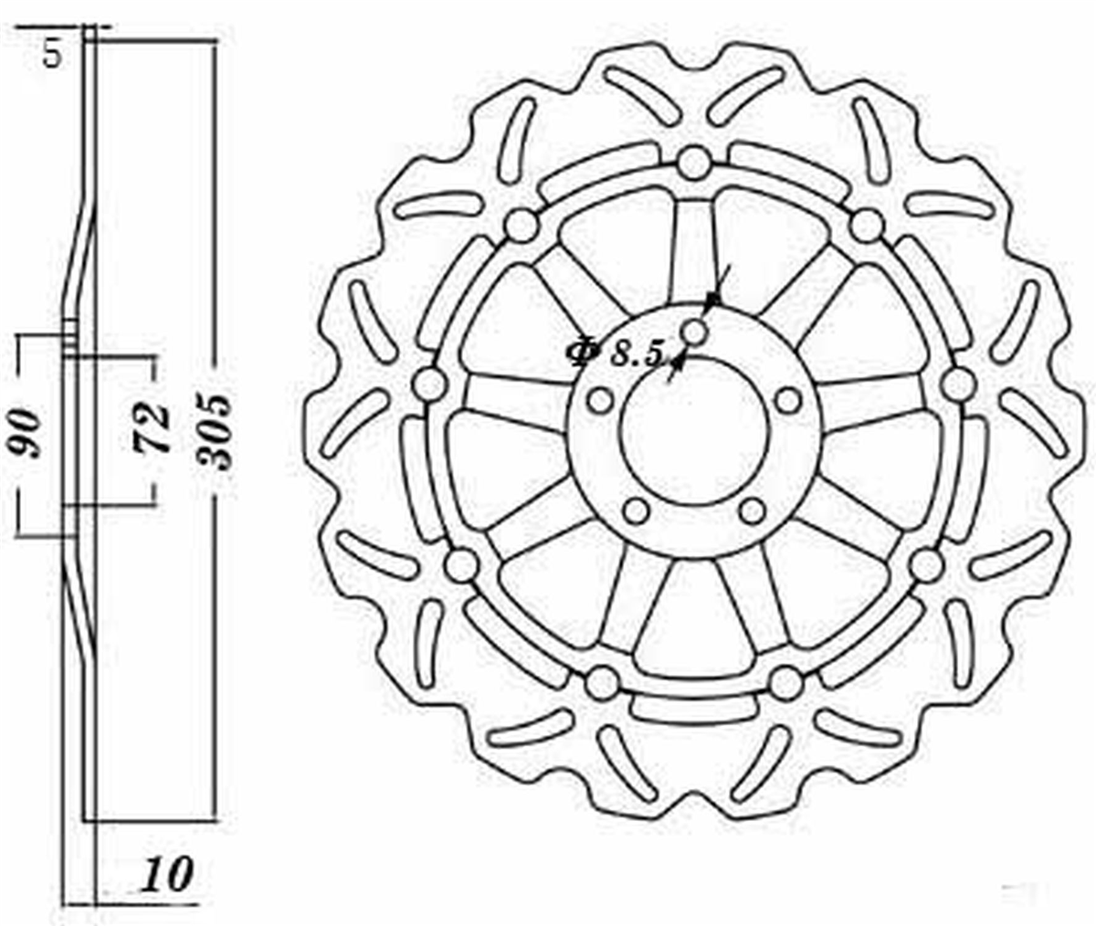 Materiał tarczy to stal nierdzewna 420 (2Cr13) o doskonałej odporności na korozję i zmienne temperatury jakim poddawane są tarcze hamulcowe. Wykonana przy użyciu technologii CNC. Tarcza posiada wyprofilowane wycięcia redukujące masę, ułatwiają także chłodzenie tarczy i oczyszczanie klocków hamulcowych. Środek tarczy wykonany jest anodowanego aluminium 6061-T6. Tarcze posiadają certyfikat: ISO9001:2008.