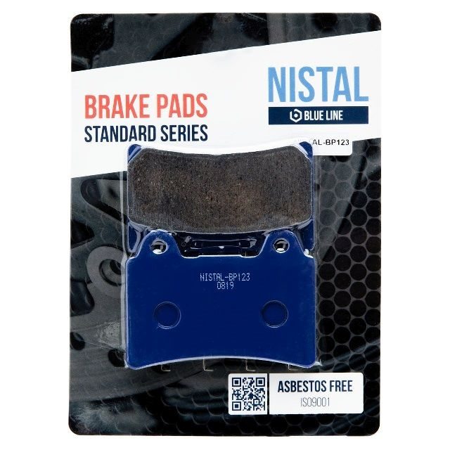 Klocki hamulcowe marki NISTAL to bezpieczny i trwały produkt posiadający doskonały stosunek jakości do ceny. Okładzina to organiczny materiał cierny wzbogacony dodatkami poprawiającymi hamowanie. Klocki z niebieskiej serii BLUE LINE dzięki zawartości 20% miedzi, zapewniają dobre odprowadzanie ciepła, nie szarpią i nie piszczą podczas hamowania. Zapewniają łagodne zużywanie się tarczy. Sprawdzą się również w cięższych motocyklach do rekreacyjnej jazdy. Wytwarzane zgodnie z certyfikatami: ISO 9001:2008, ISO 14001:2004, OHSAS 18001:2007.