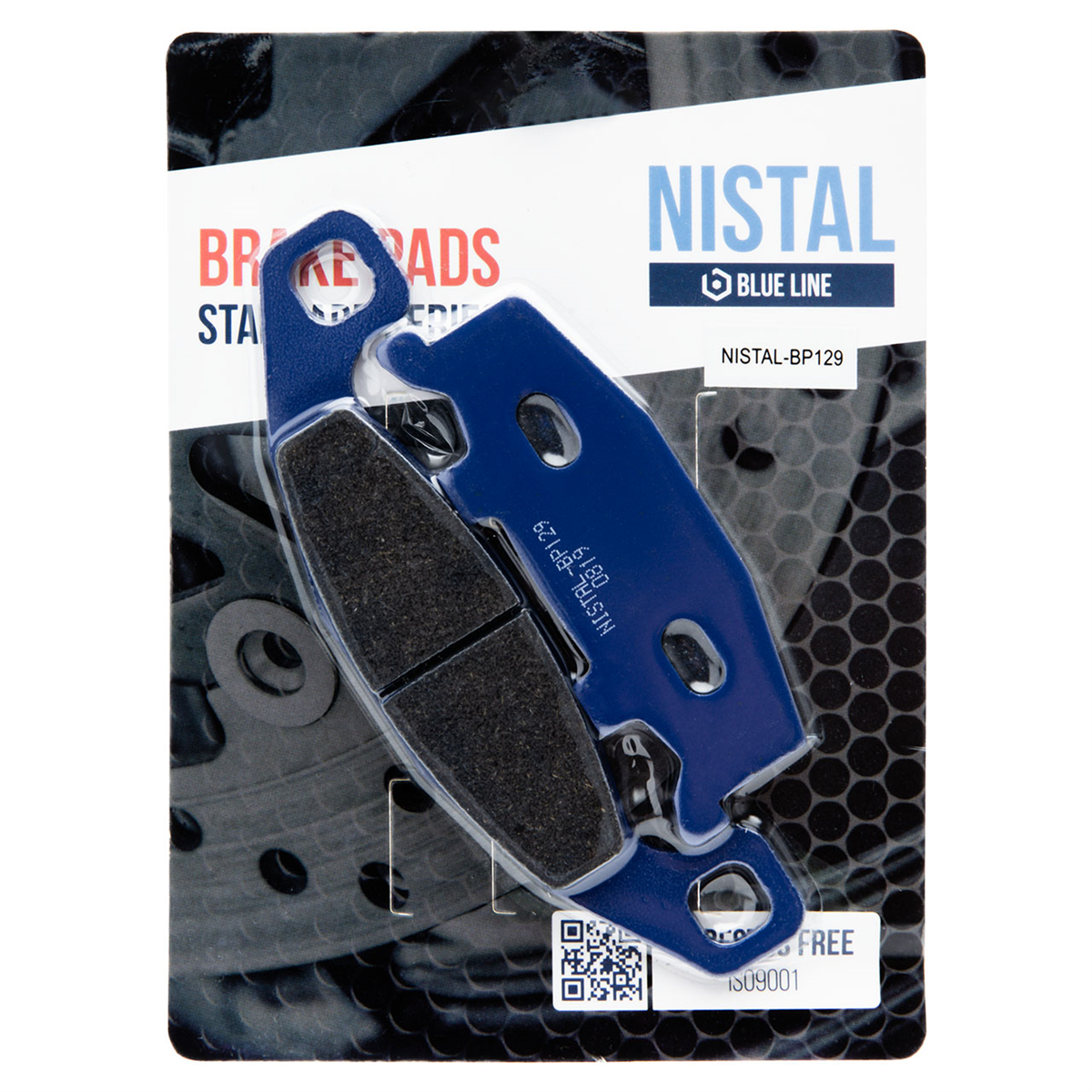 Klocki hamulcowe marki NISTAL to bezpieczny i trwały produkt posiadający doskonały stosunek jakości do ceny. Okładzina to organiczny materiał cierny wzbogacony dodatkami poprawiającymi hamowanie. Klocki z niebieskiej serii BLUE LINE dzięki zawartości 20% miedzi, zapewniają dobre odprowadzanie ciepła, nie szarpią i nie piszczą podczas hamowania. Zapewniają łagodne zużywanie się tarczy. Sprawdzą się również w cięższych motocyklach do rekreacyjnej jazdy. Wytwarzane zgodnie z certyfikatami: ISO 9001:2008, ISO 14001:2004, OHSAS 18001:2007.