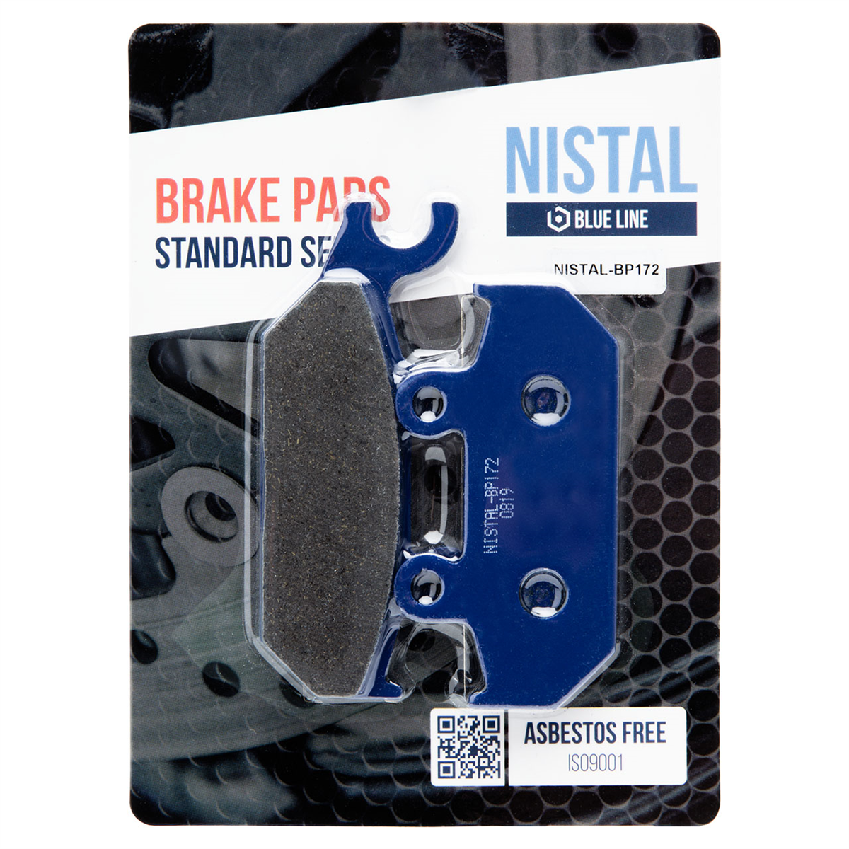 Klocki hamulcowe marki NISTAL to bezpieczny i trwały produkt posiadający doskonały stosunek jakości do ceny. Okładzina to organiczny materiał cierny wzbogacony dodatkami poprawiającymi hamowanie. Klocki z niebieskiej serii BLUE LINE dzięki zawartości 20% miedzi, zapewniają dobre odprowadzanie ciepła, nie szarpią i nie piszczą podczas hamowania. Zapewniają łagodne zużywanie się tarczy. Sprawdzą się również w cięższych motocyklach do rekreacyjnej jazdy. Wytwarzane zgodnie z certyfikatami: ISO 9001:2008, ISO 14001:2004, OHSAS 18001:2007.